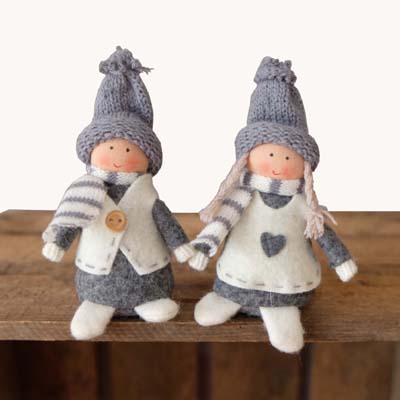 2er Set "Wichtel", grau/weiß, Sitzhöhe ca. 11 cm