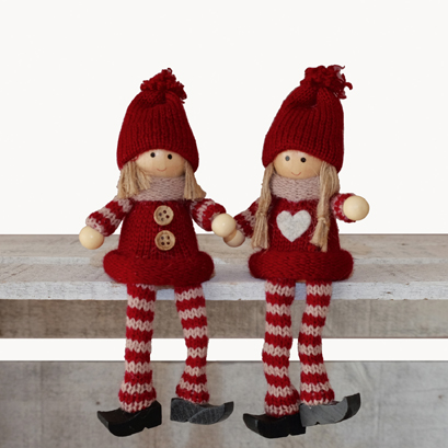 2er Set "Kantenhocker" dunkelrot/beige