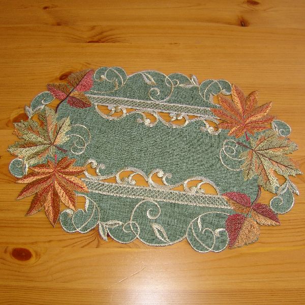 30/45 oval grün-bunt Stickerei "Herbstlaub"