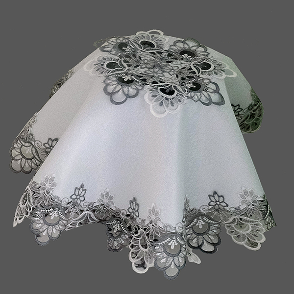 85 rund, Spitze ecru-silber Jacquardoptik