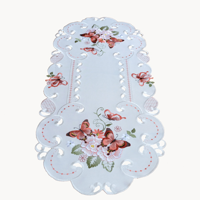 40/90 oval ecru-bunt-rot-Stickerei "Schmetterling"