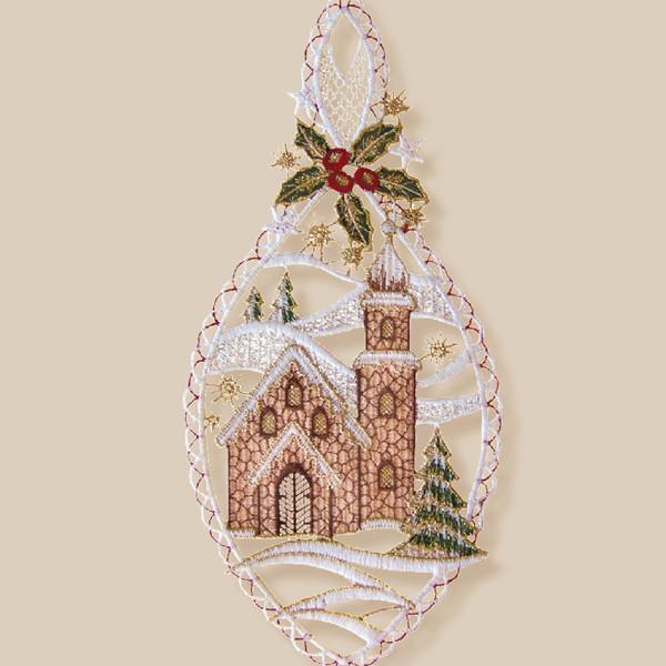 Fensterbild Plauener Stickerei "Kirche" (inkl. Saughaken)