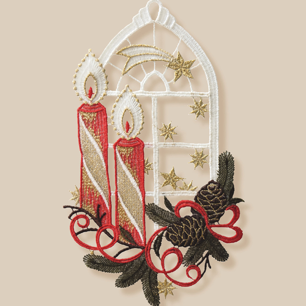 Fensterbild Plauener St "Kerzen mit Zapfen"(inkl. Saughaken)