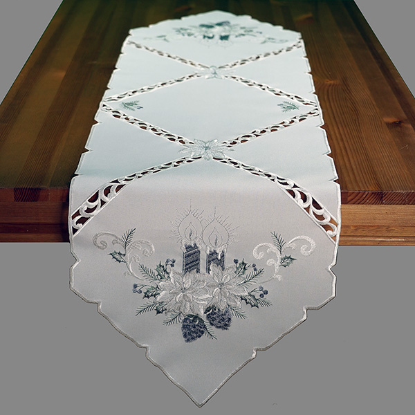 40/140 Stickerei "Kerzen und Zapfen", silber-ecru