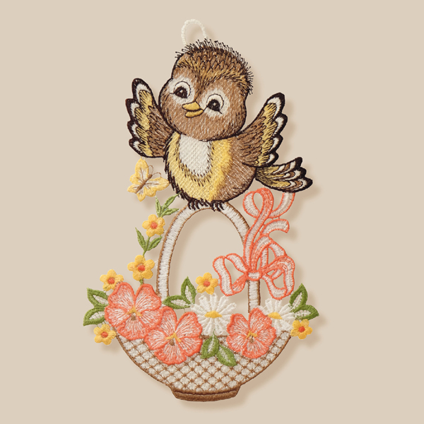 Fensterbild Plauener Stick. "Spatz" (inkl. Saughaken)