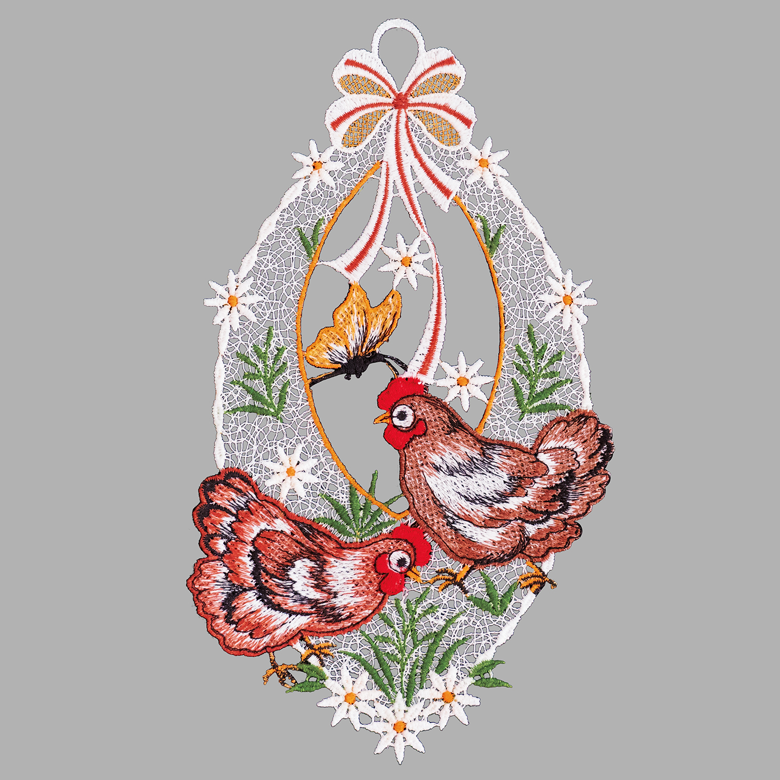 FB Plauener Stickerei "Zwei Hühner"+Saughaken