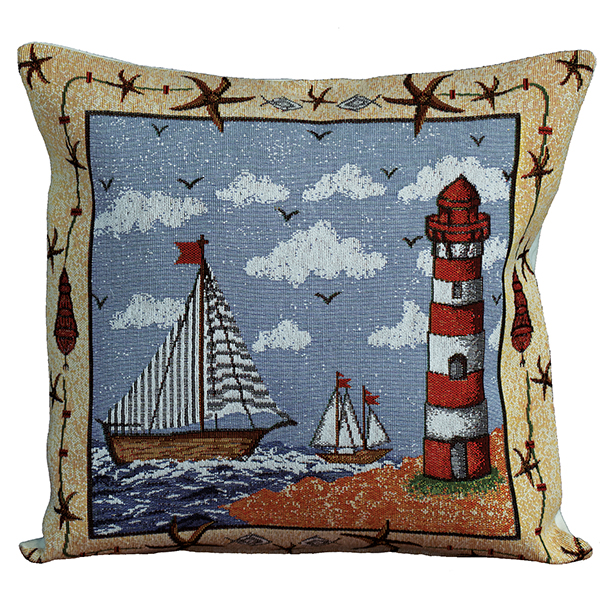 40/40 Gobelin Kissenhülle "Schiffe & Leuchtturm"