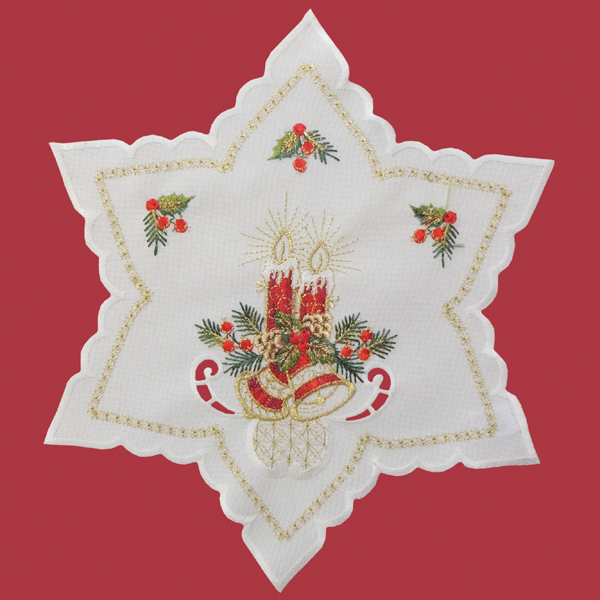 Stern 30 cm, ecru-bunt Stickerei "rote Kerzen"