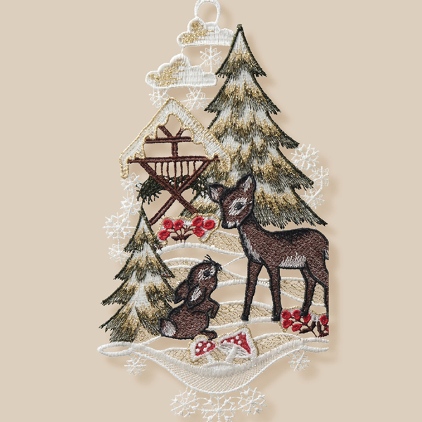 Fensterbild Plauener Stick. "Reh & Hase" (inkl. Saughaken)