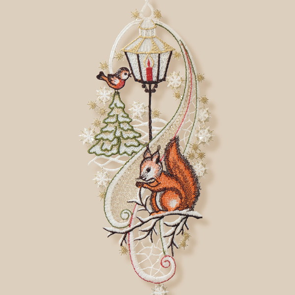 Fensterb. Plauener Stick. "Eichhörnchen" (inkl. Saughaken)