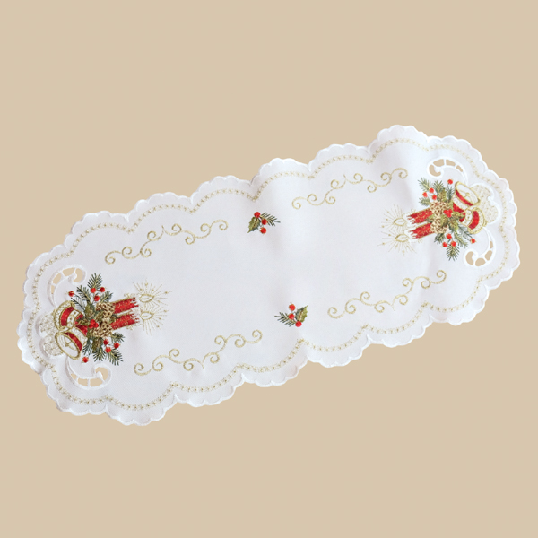 30/70 oval, ecru-bunt Stickerei "rote Kerzen"
