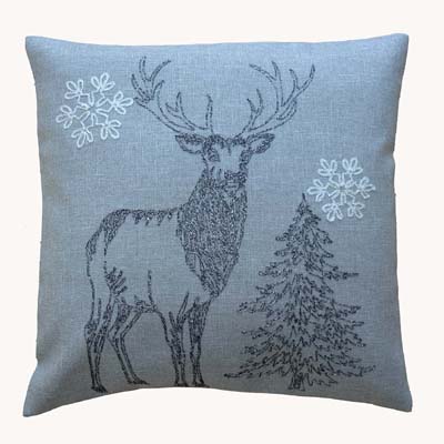 40/40 KH grau/weiß Stickerei "Elch/ Bäume/ Schneesterne"