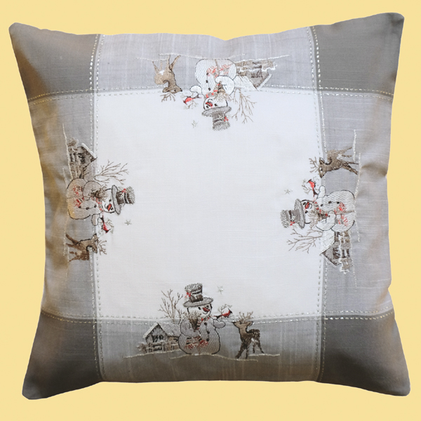 40/40 Kissenhülle, hellgrau-bunt Stickerei "Schneemann"