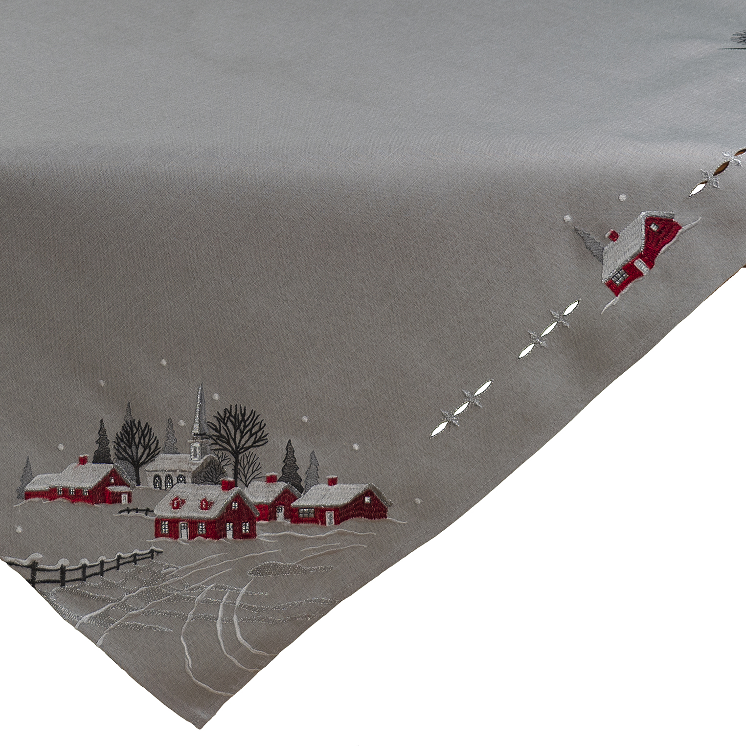 110/110 Stickerei "Dorf mit Kirche", rot/grau